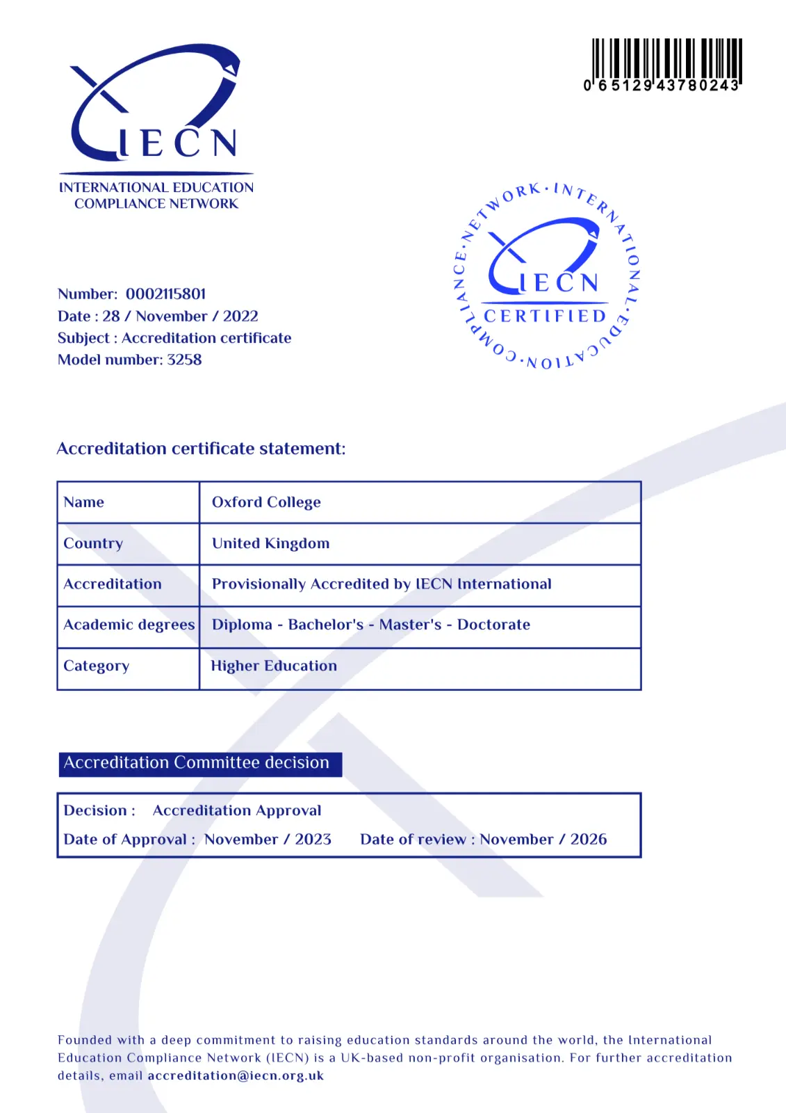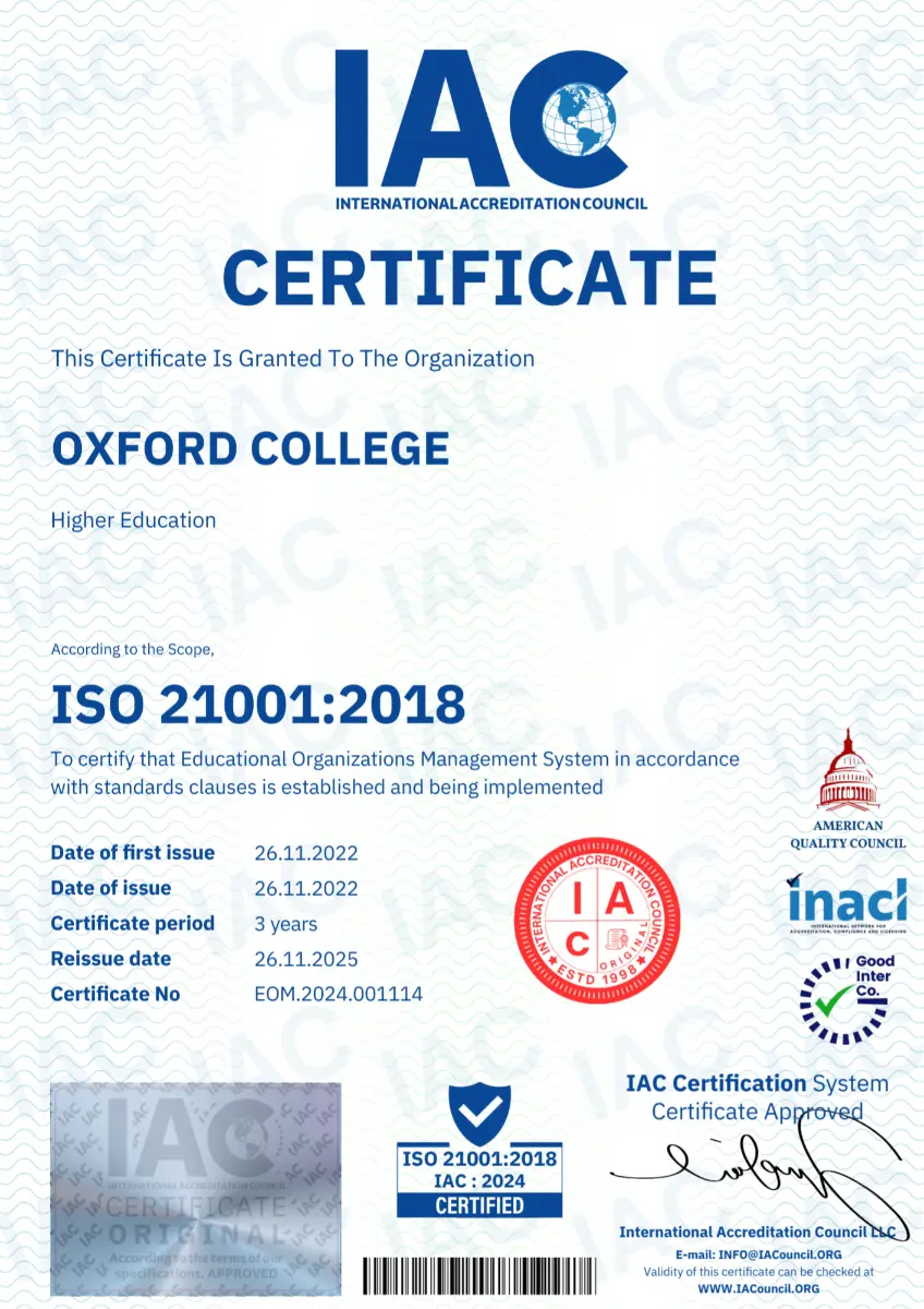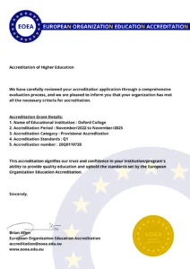 Oxford College affirms that it is not affiliated with the University of Oxford in any form and has no legal or institutional connection to it. Oxford College is an independent educational institution, officially registered in the United Kingdom under Company Number 14552808 and listed with the UK Register of Learning Providers (UKRLP) under Provider Reference Number 10095030.